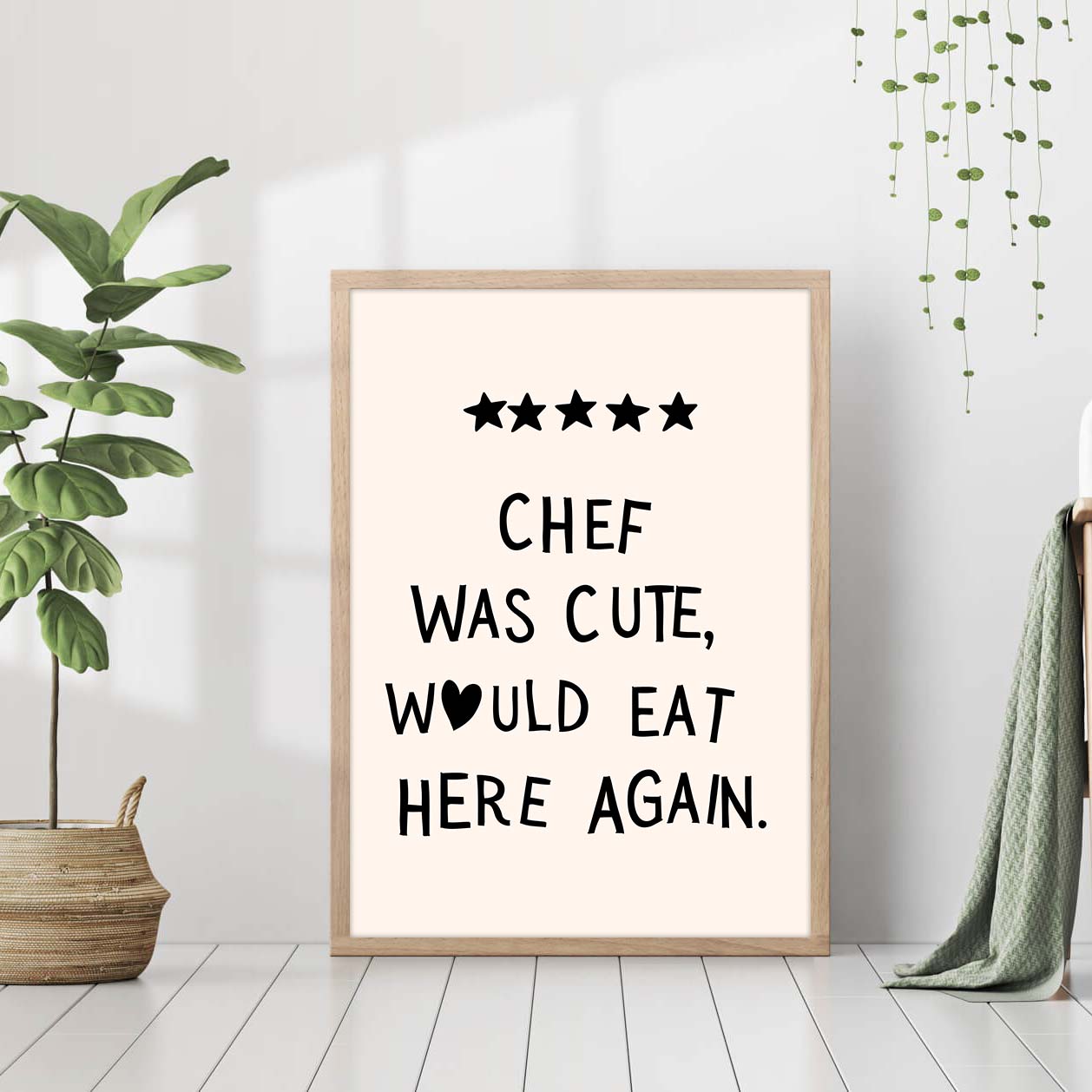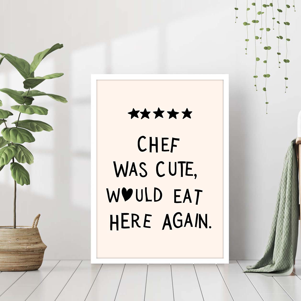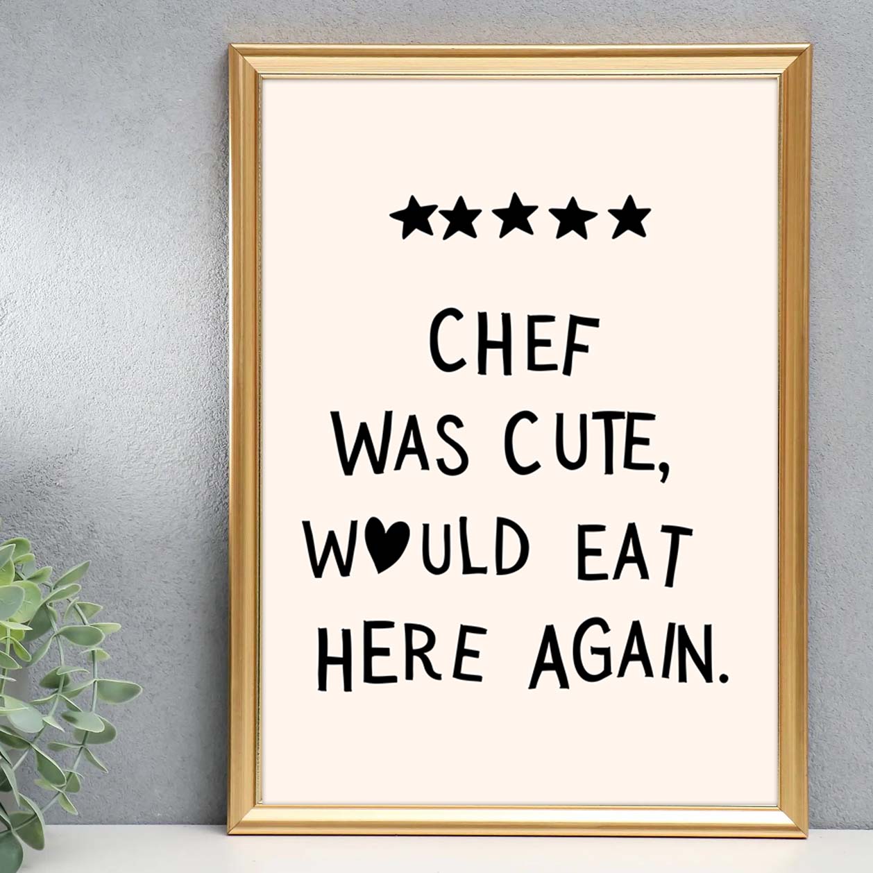 Aesthetic Kitchen Decor Cute Cooking Art Kitchen Wall Art Print Minimalist Heart Print Black Chef Art Print
