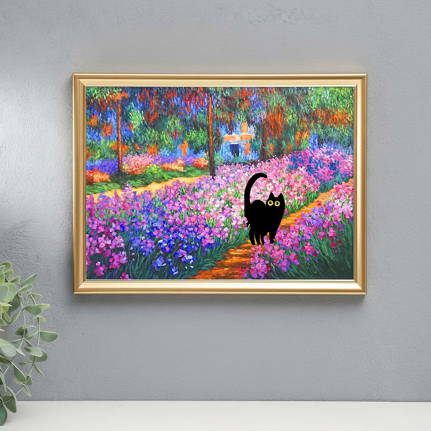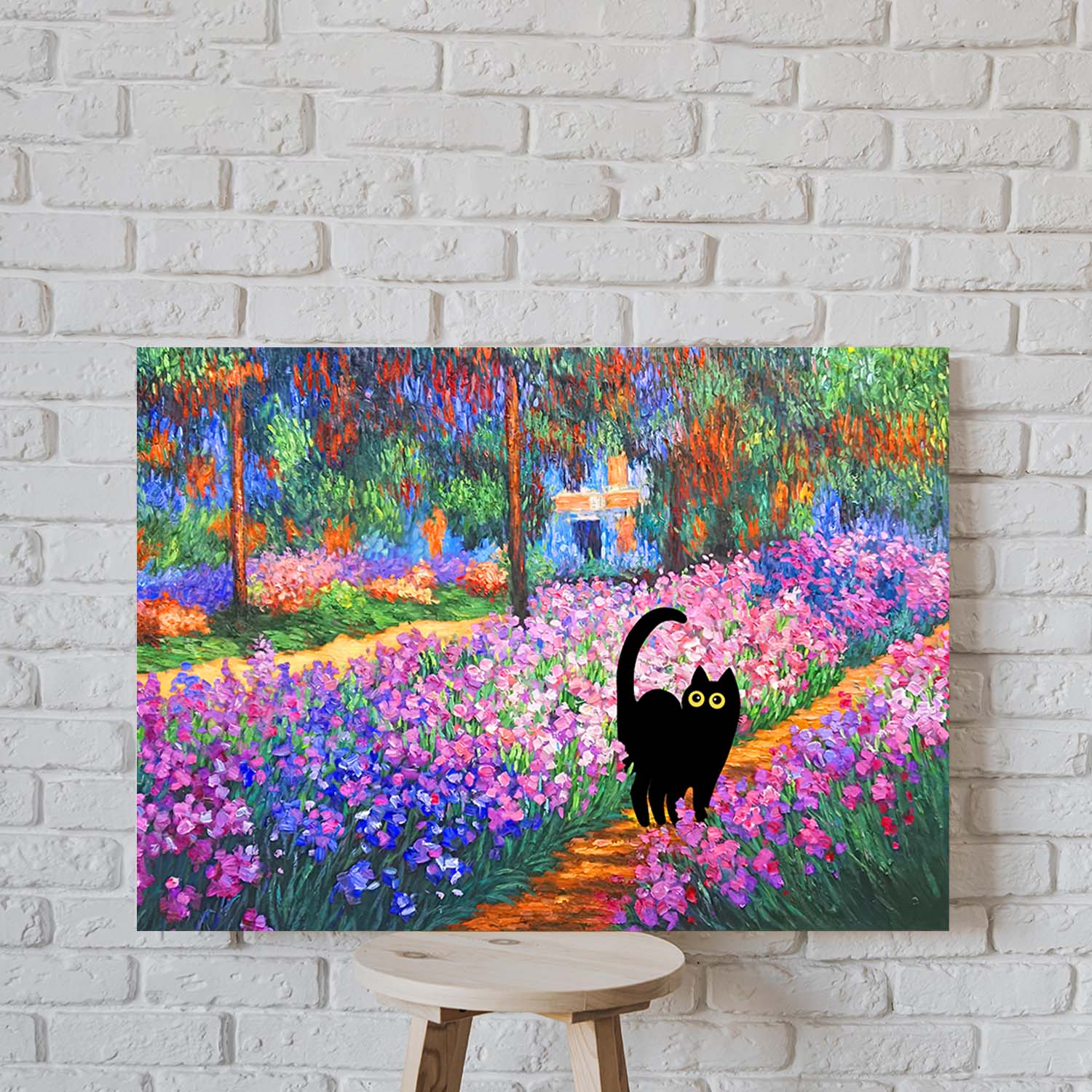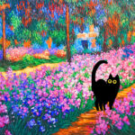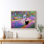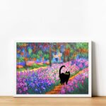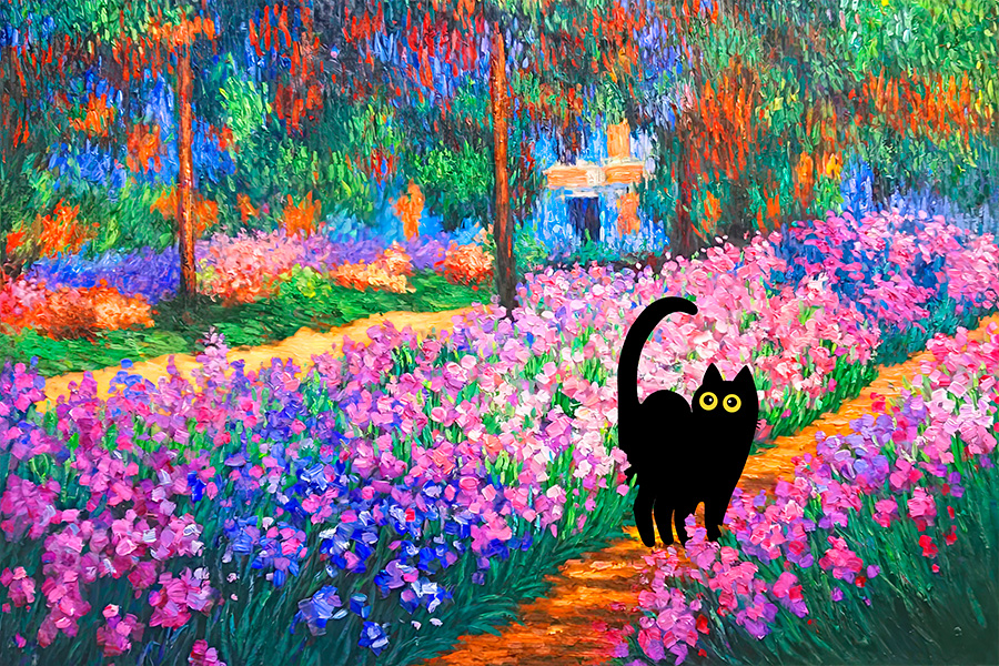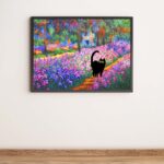 Black Cat in Claude Monet Garden Wall Art Painting Print
