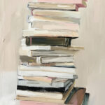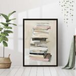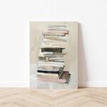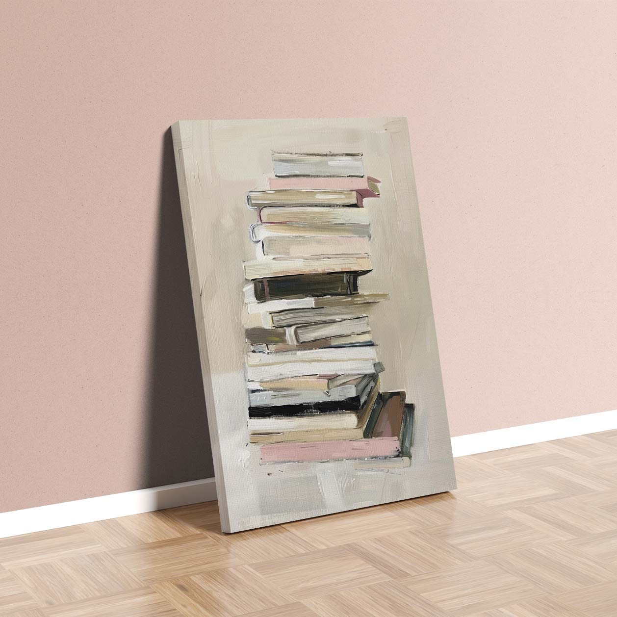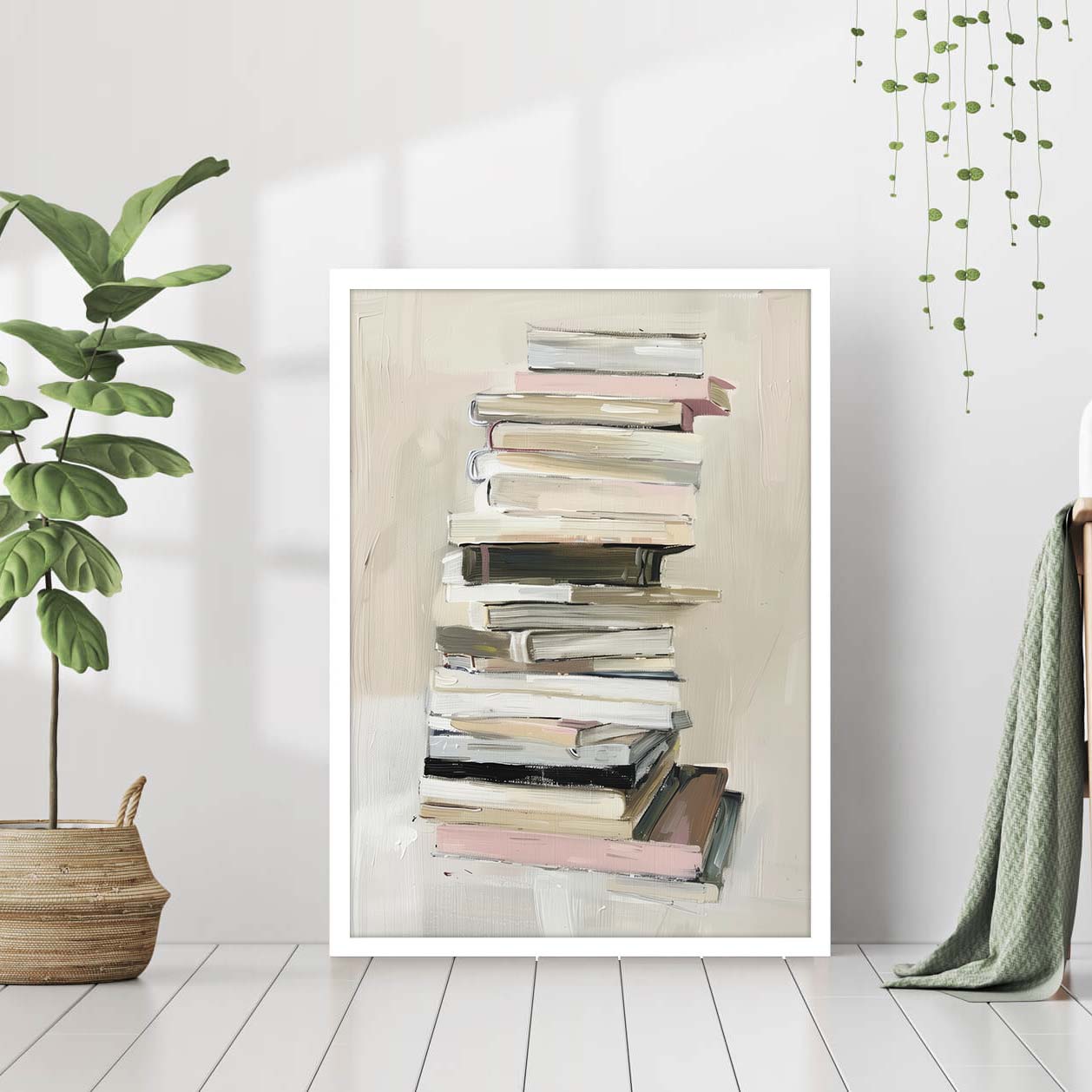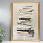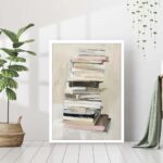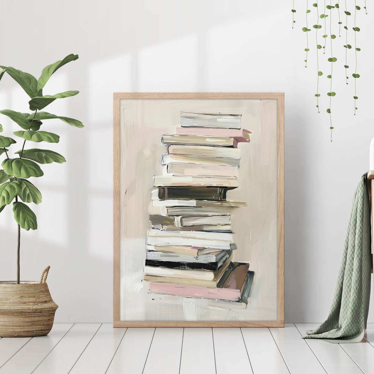 Book Lover Print, Stack of Books Painting, Bookworm Print Art, Trendy Wall Art, Apartment Aesthetic\Preview