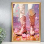Flowers inside boots pink sparkle glitter western Boots