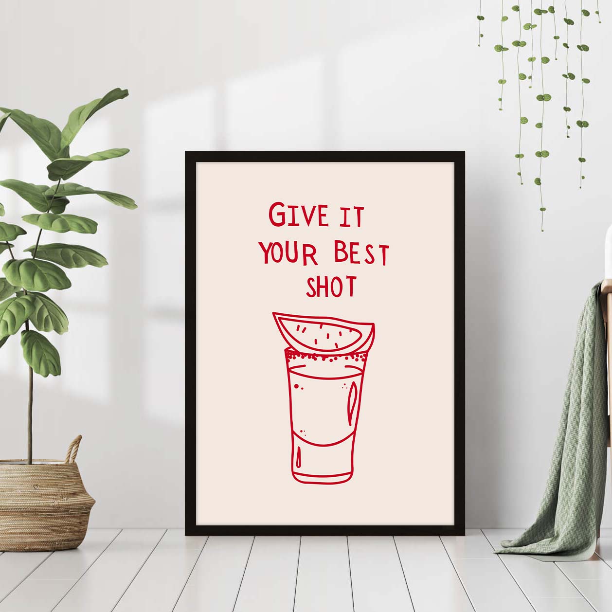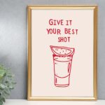 More Colors – Bar Art Print Liquor Poster Give It Your Best Shot Print Modern Bar Cart Wall Art Vodka Poster Red Tequila