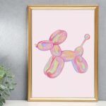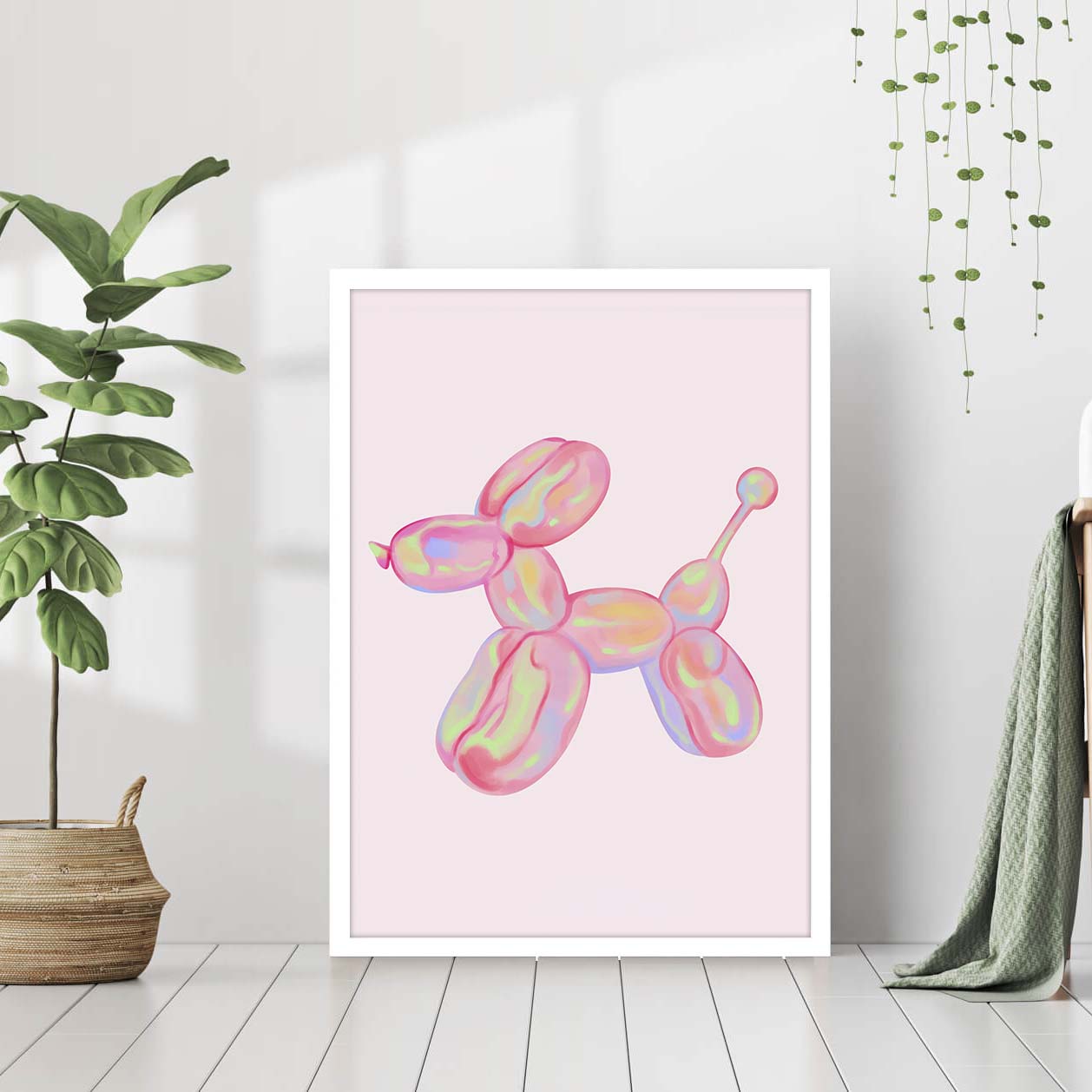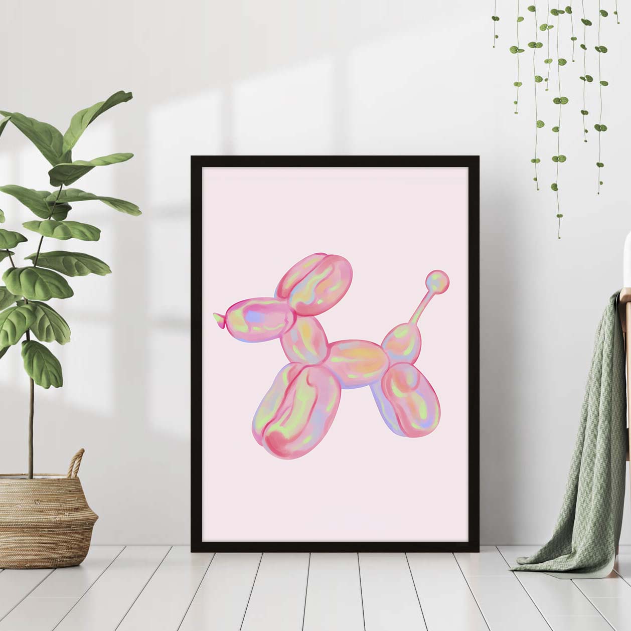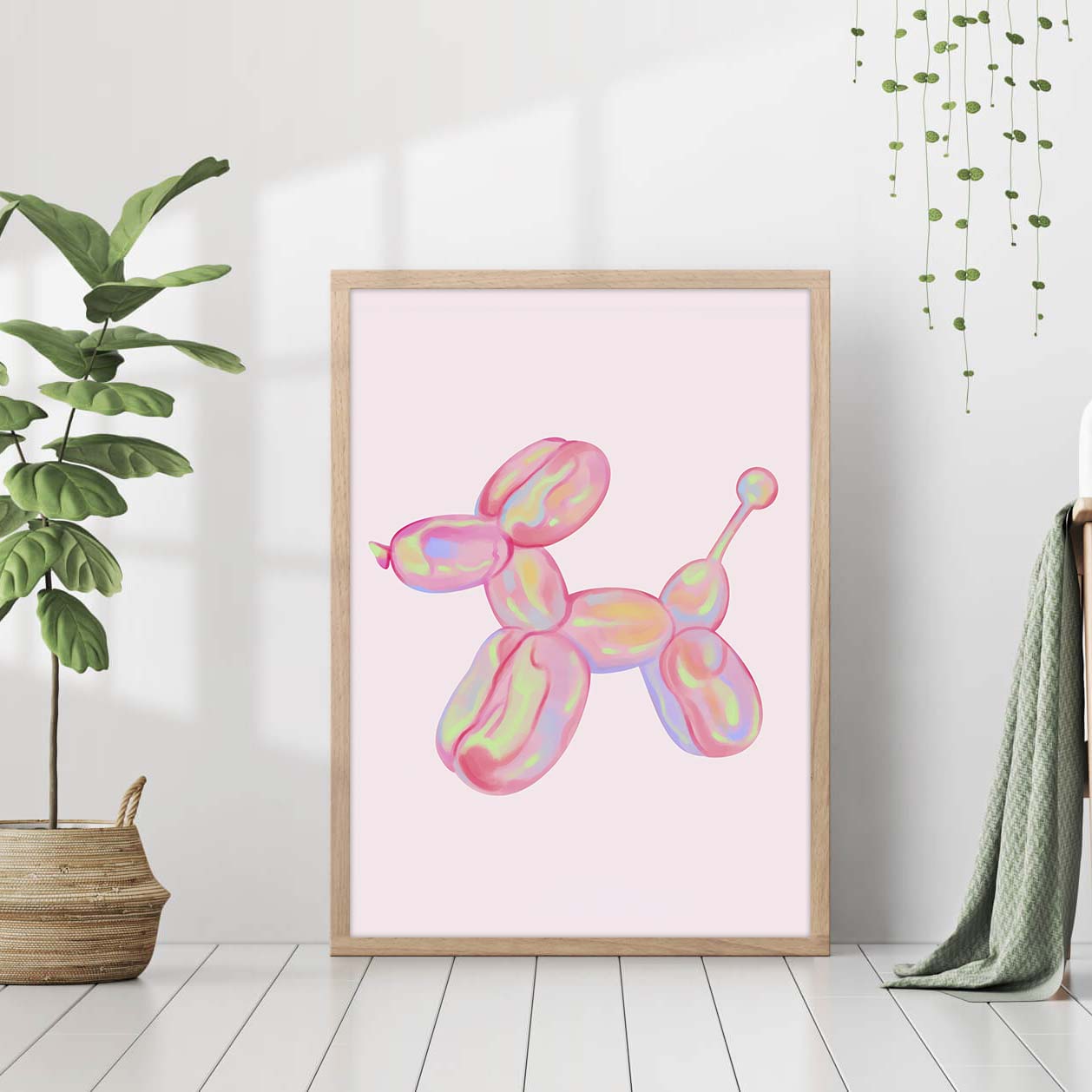 Pink balloon dog printable wall art, preppy pink bedroom decor teens, posters for dorm room, dorm print, college apartment art, Trendy Disco