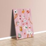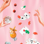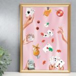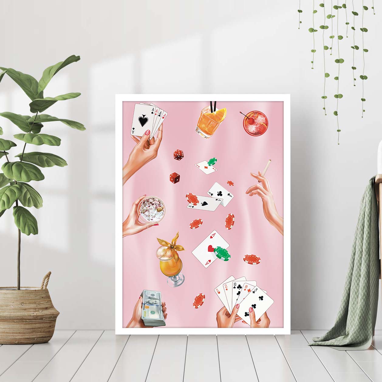 Playing Cards Wall Print, Women Poker Night Cards & Drinks, Retro wall art Print, bar cart, Dorm room decor