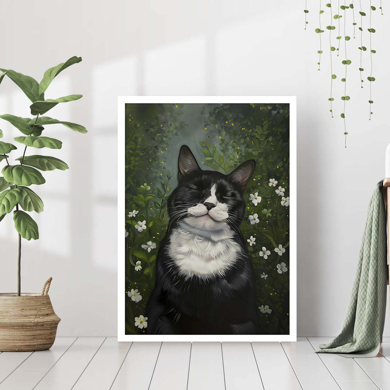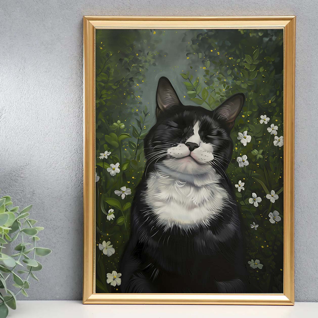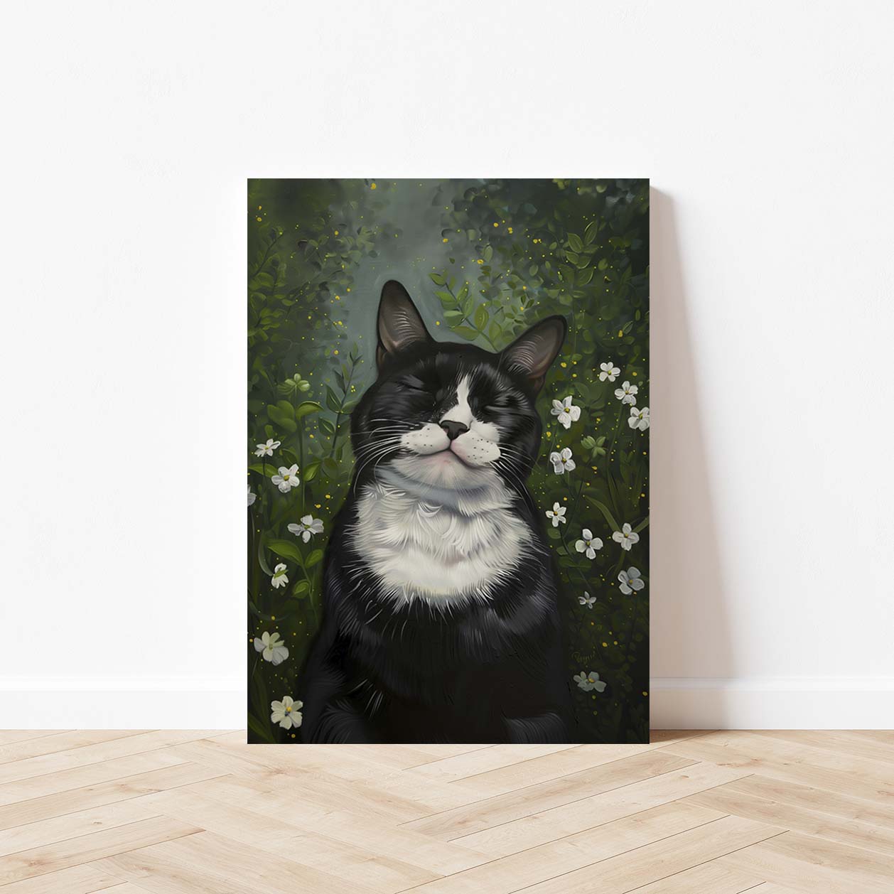 Tuxedo Cat Wall Art Canvas, Black and White Cat Art, Cat Mom Gift Art, Cute Kitty Wall Decor, Cat Home Art Decor