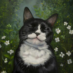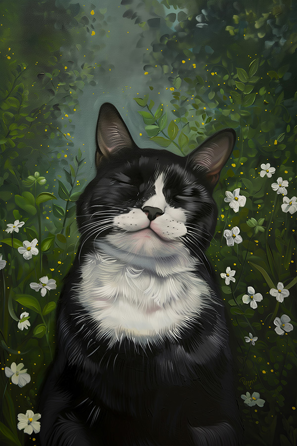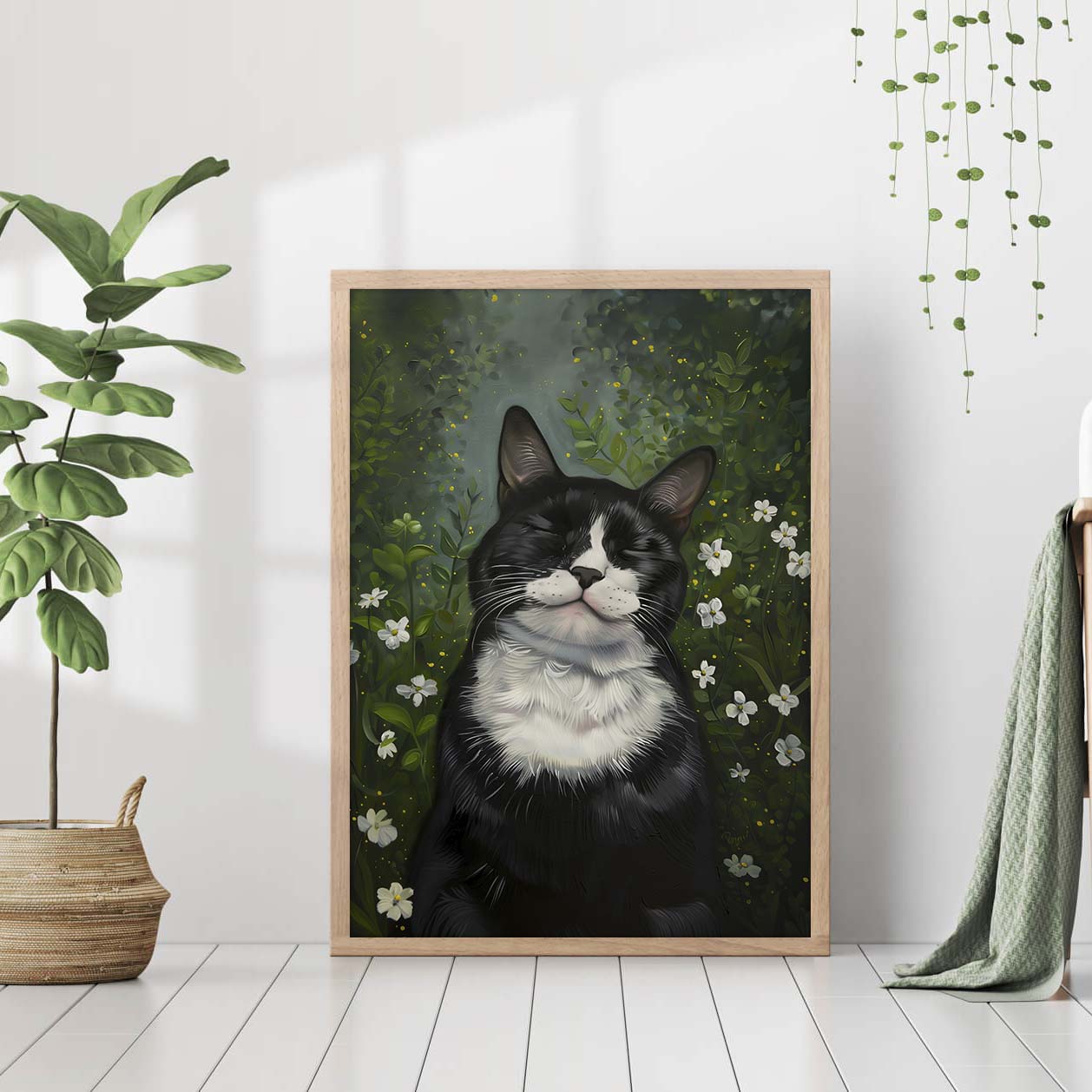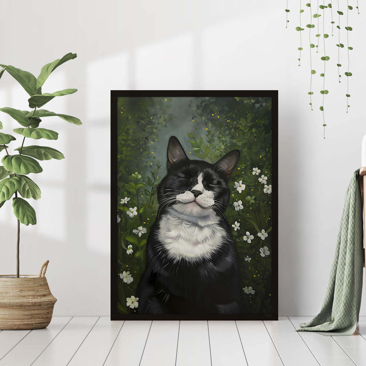 Tuxedo Cat Wall Art Canvas, Black and White Cat Art, Cat Mom Gift Art, Cute Kitty Wall Decor, Cat Home Art Decor