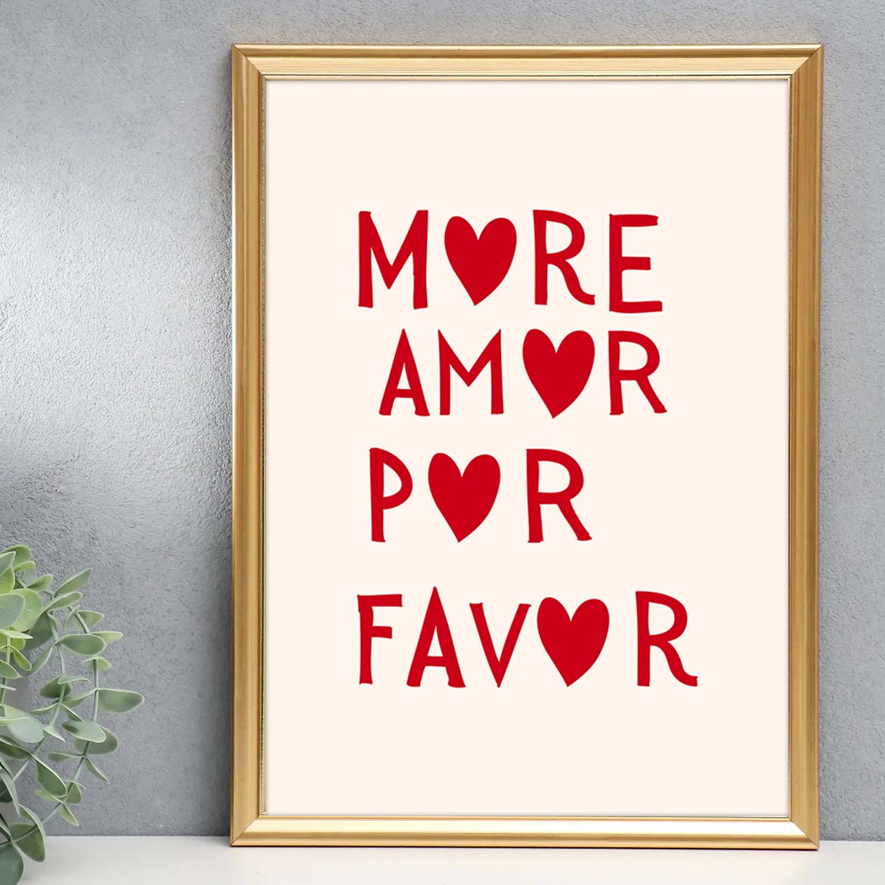 More Amor Por Favor Print Minimalist Heart Poster Aesthetic Living Room Art Love Wall Decor Eclectic Art Print