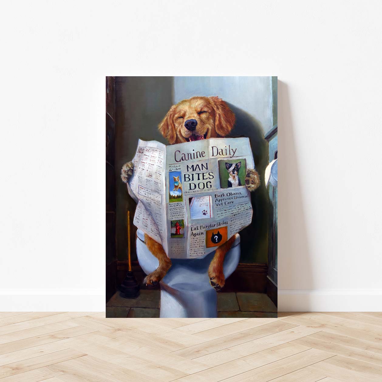 Funny Bathroom Poster Dog in toilet reading newspaper