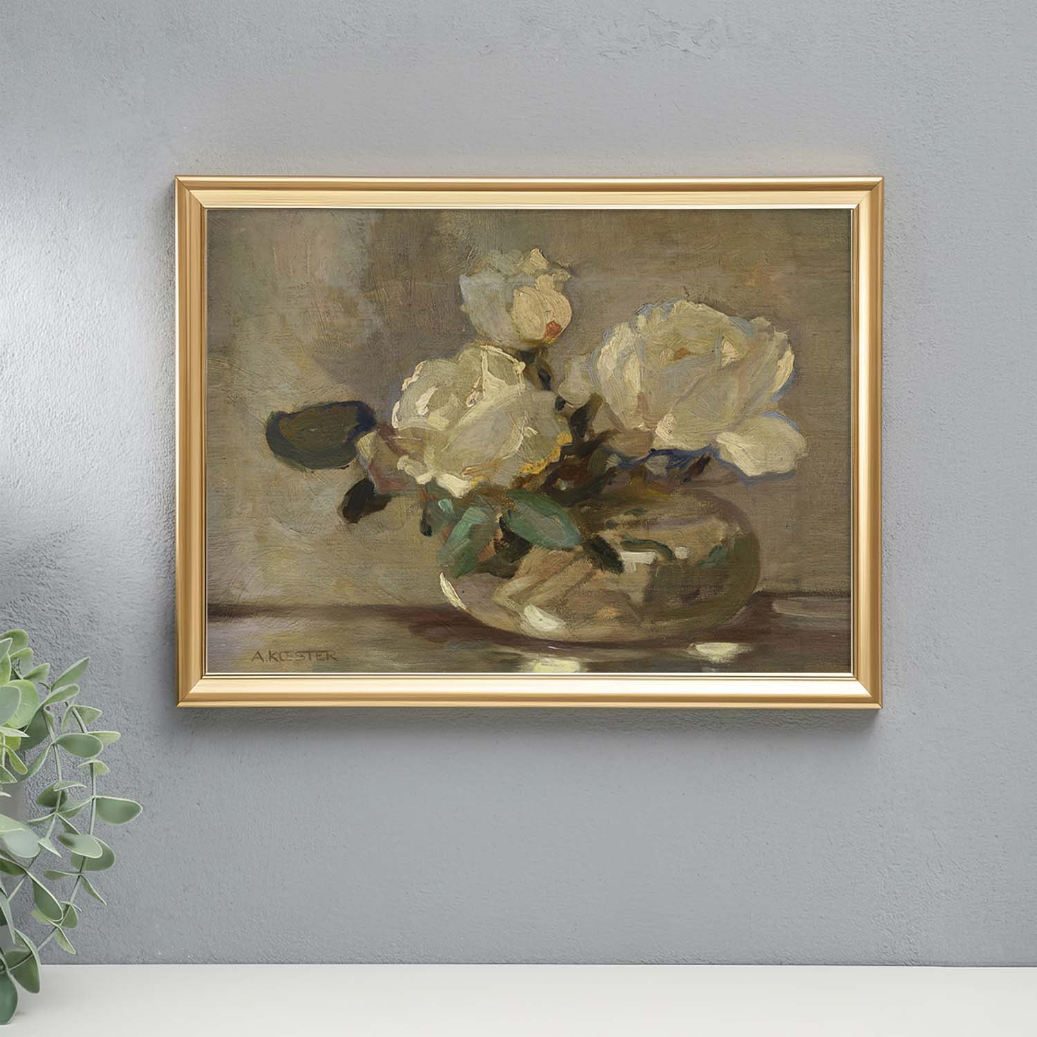 Antique Portrait Painting with Roses by Peder Severin Kroyer, Still Life Painting