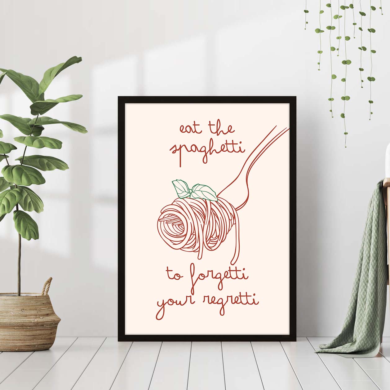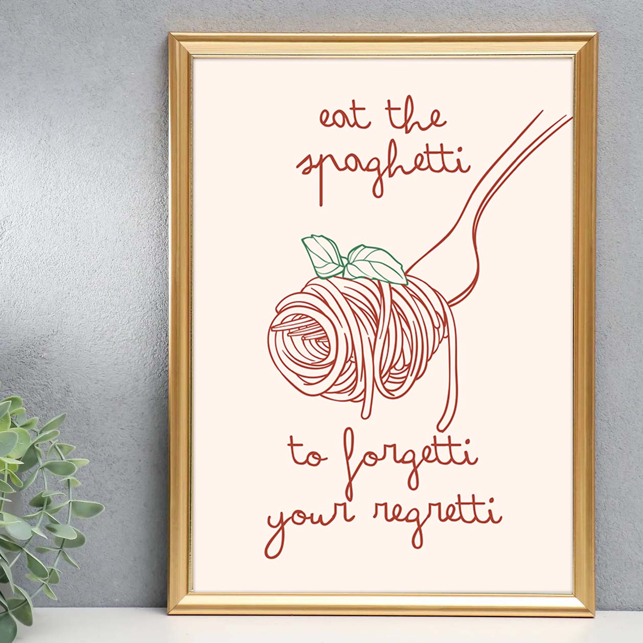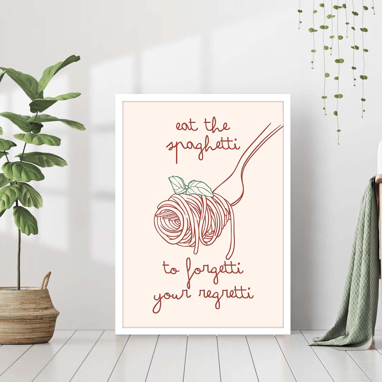 Aesthetic Kitchen Decor Funny Spaghetti Print Cute Kitchen Wall Art Minimalist Food Print Positive Quote