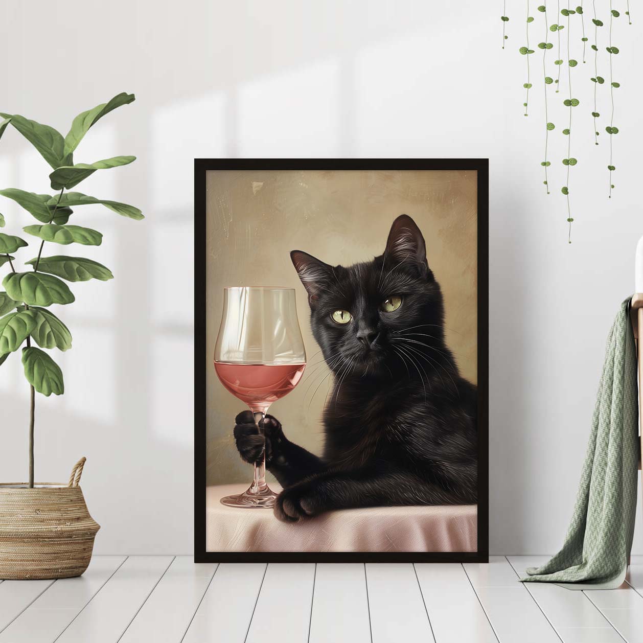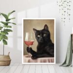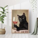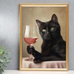 Black Cat Cocktail Print Cute Bar Cart Decor Retro Wall Art