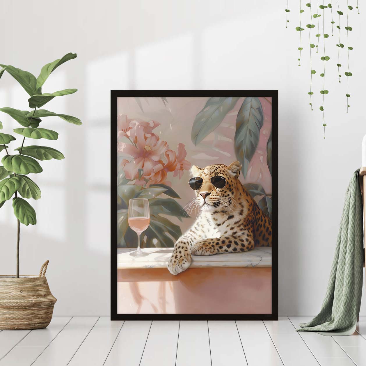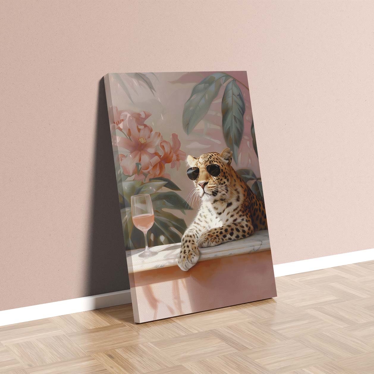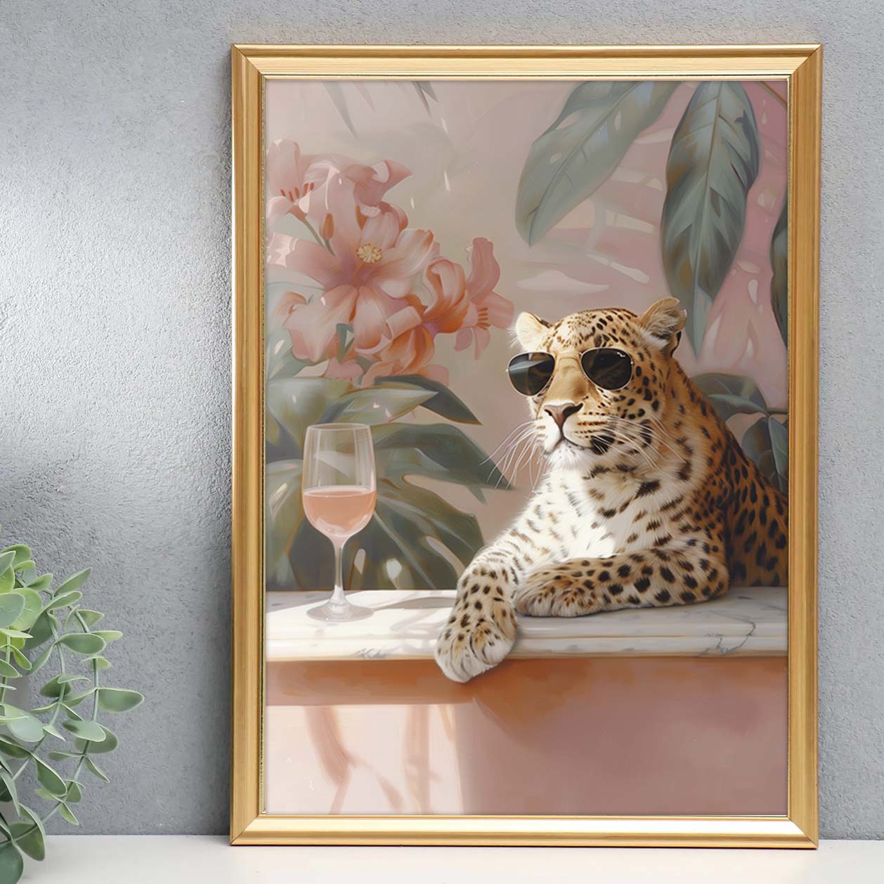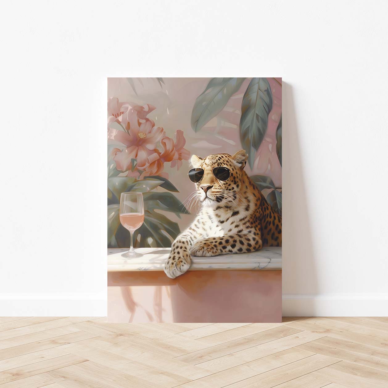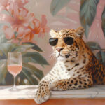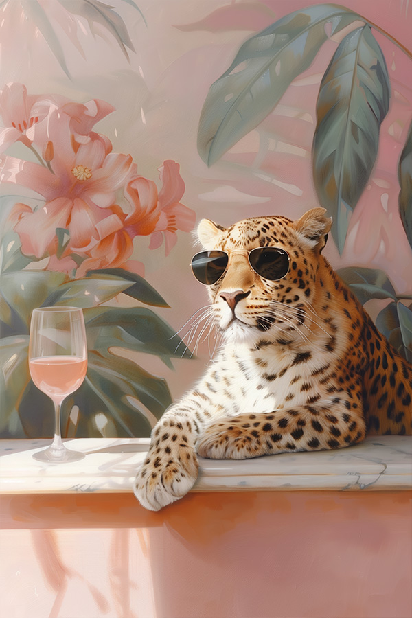 Leopard with glass of wine