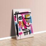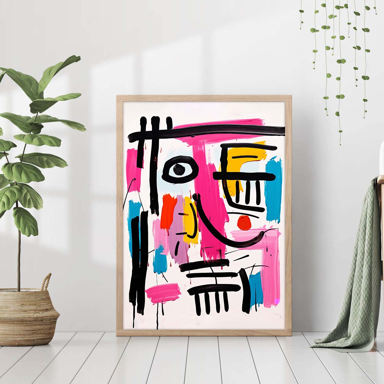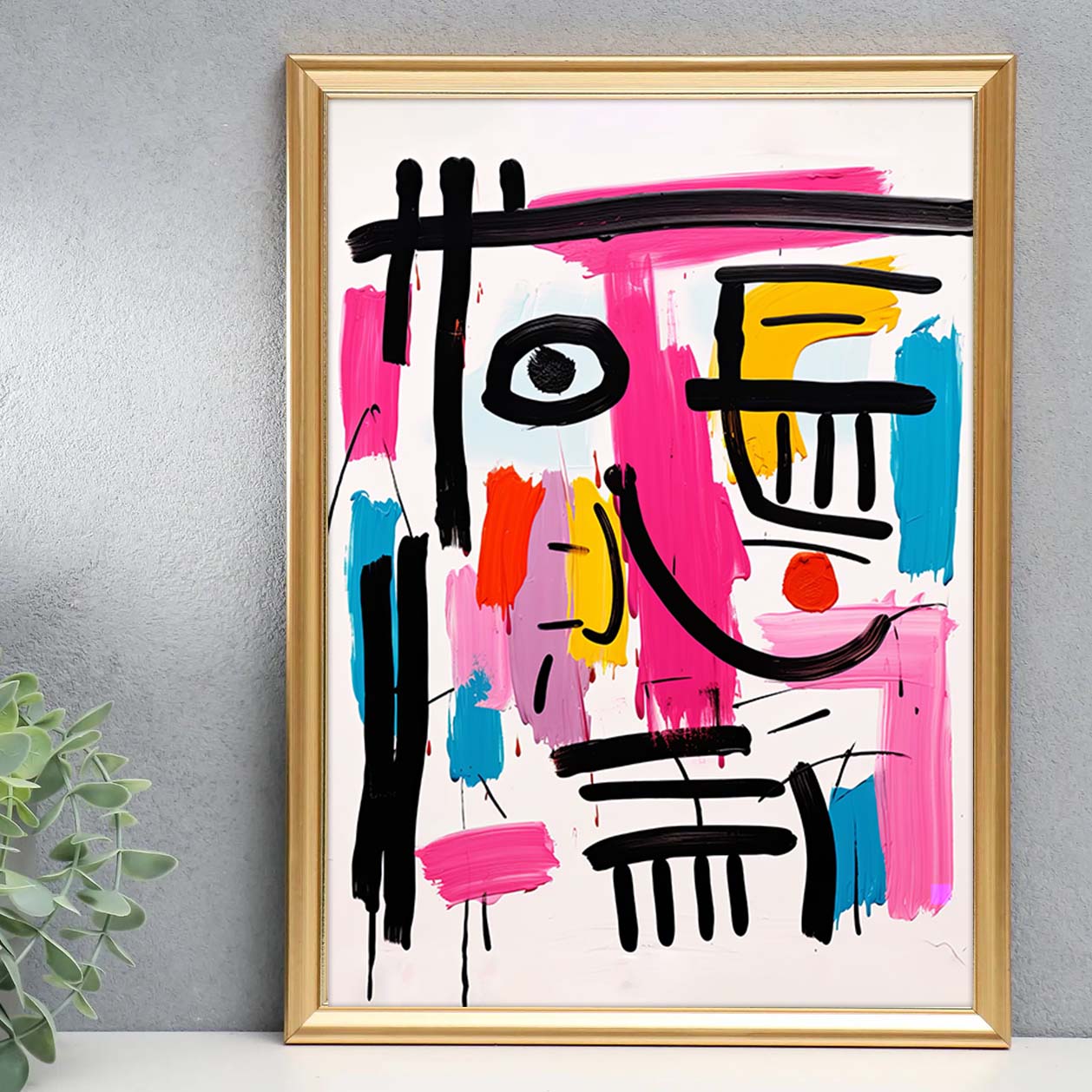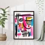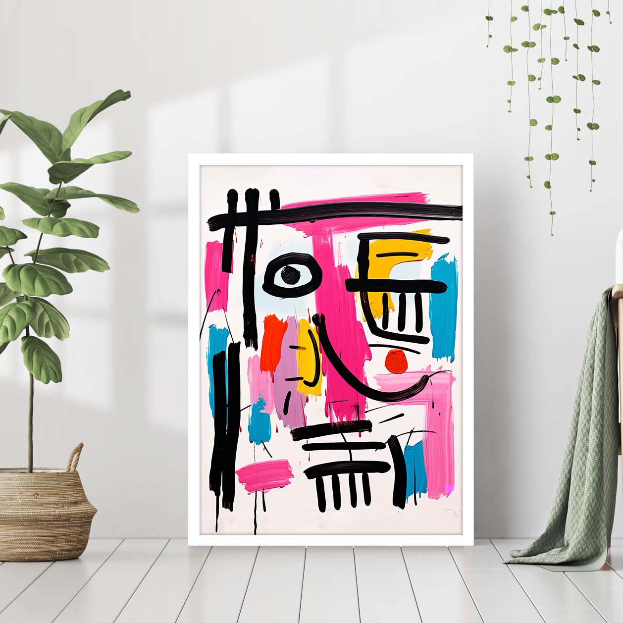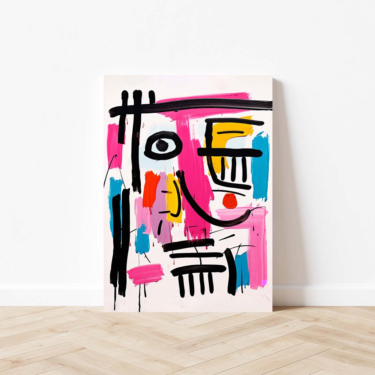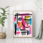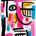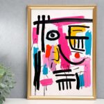 Modern cute happy messy line art face, pink, colorful