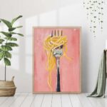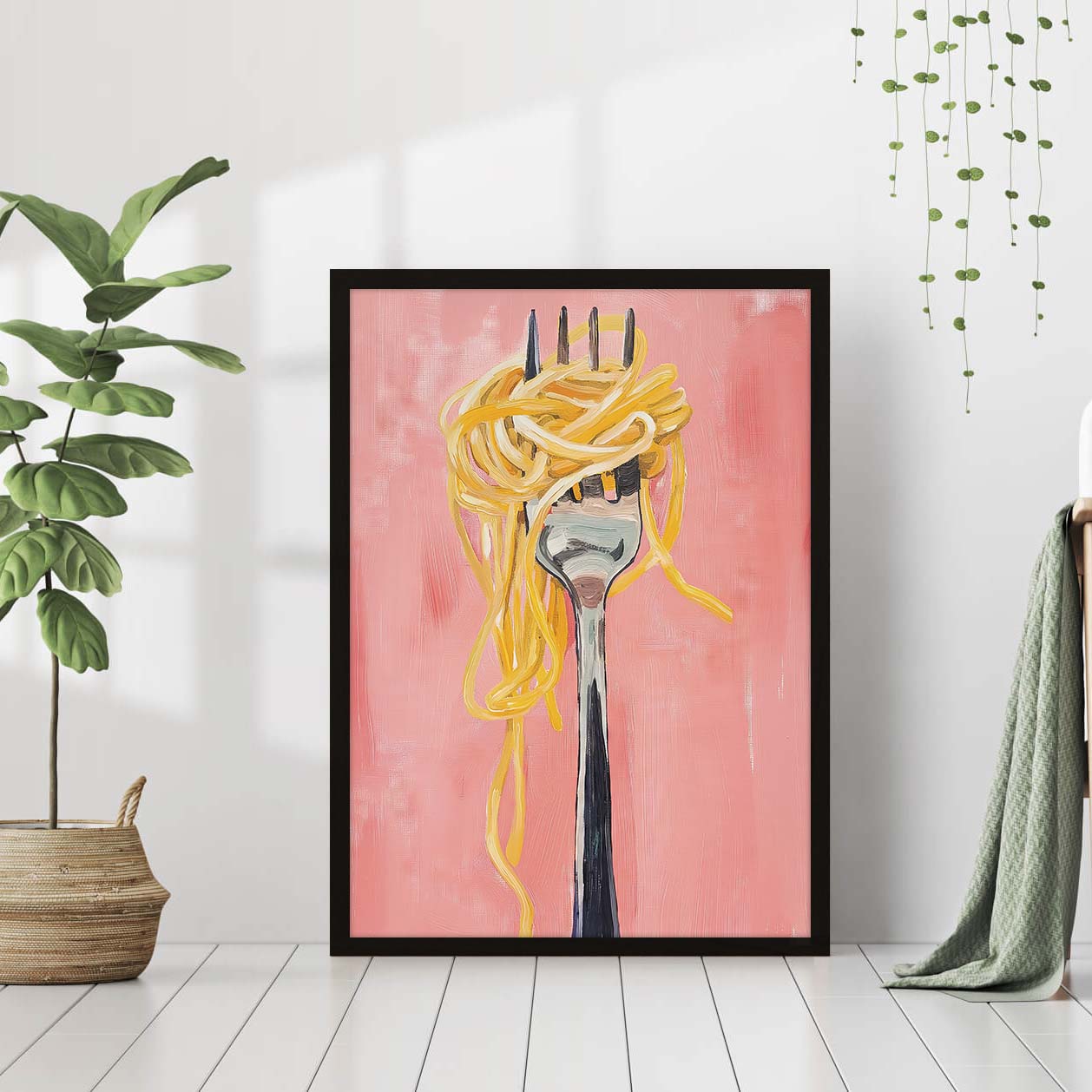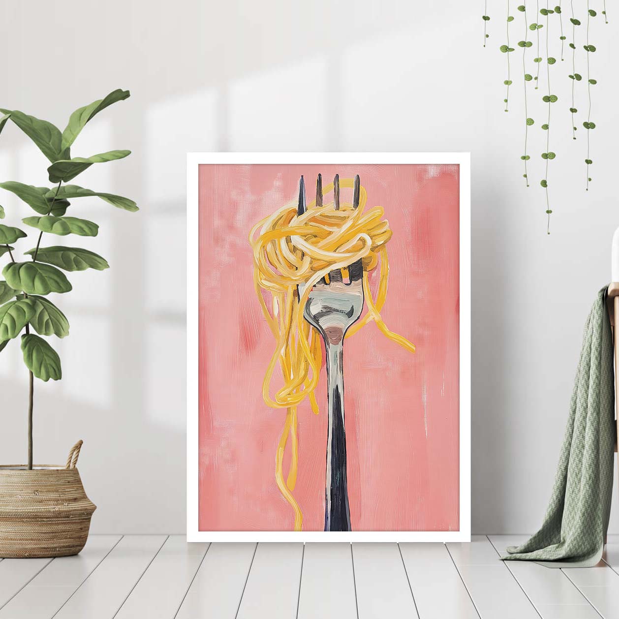Spagetti kitchen art preppySpaghetti on a Fork Framed Print with Mat Spaghetti Art Pasta Art Twirled Spaghetti Print Italian Food Art Kitchen Art