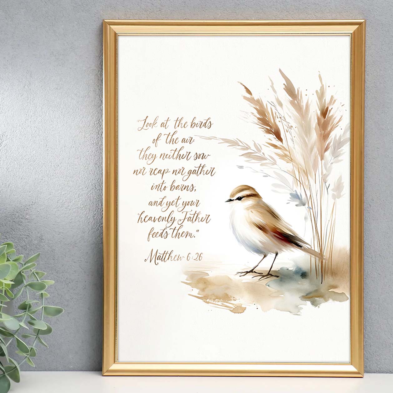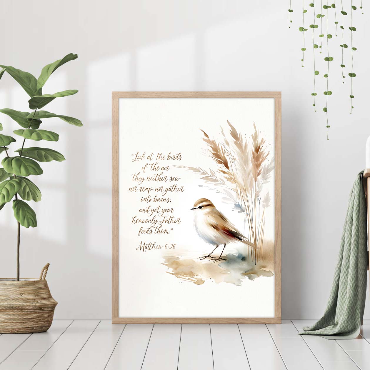 Look at the birds of the air – matthew 6 26 print – Minimal Scripture Print