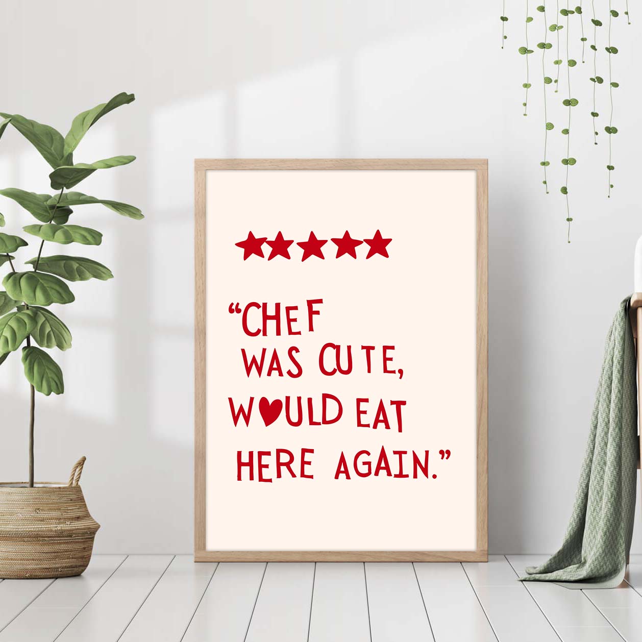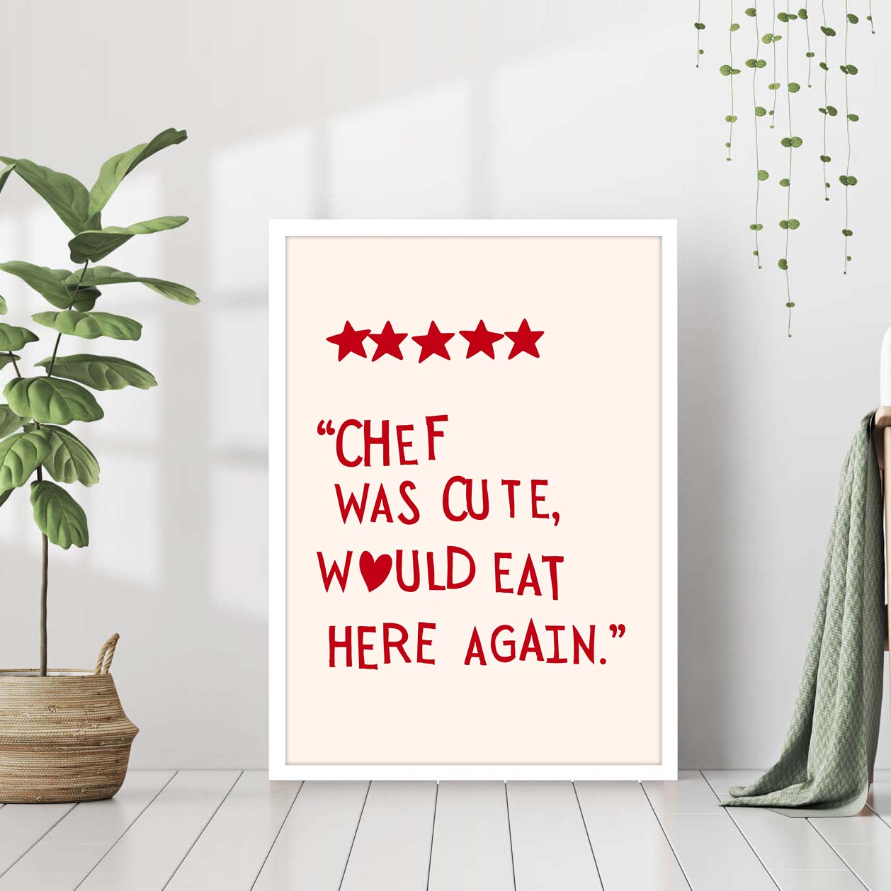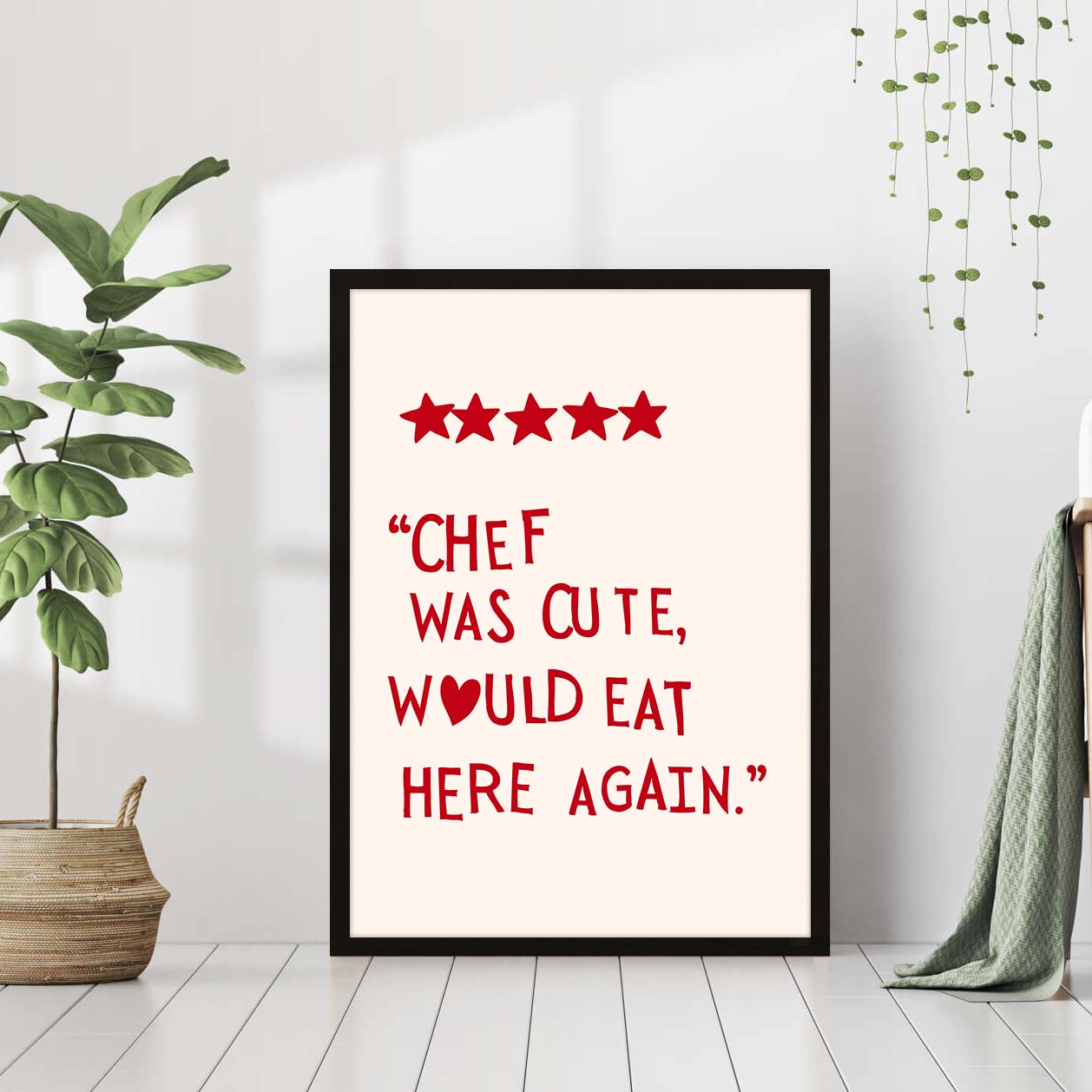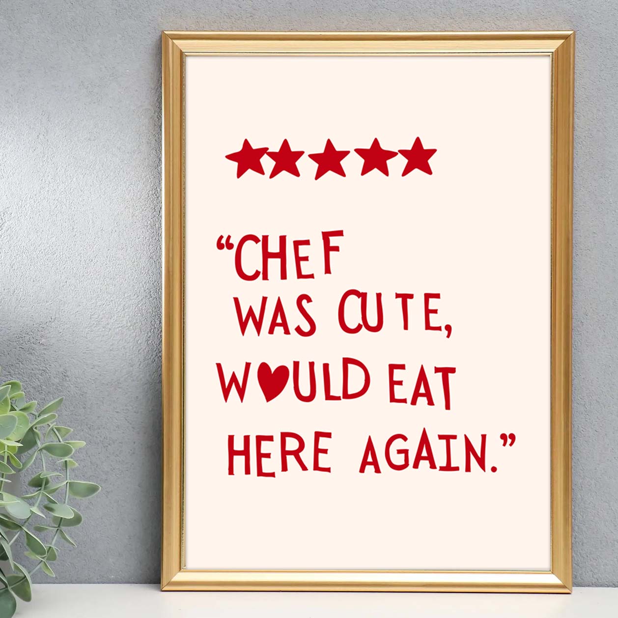 Aesthetic Kitchen Decor Cute Cooking Art Kitchen Wall Art Print Minimalist Heart Print Black Chef Art Print