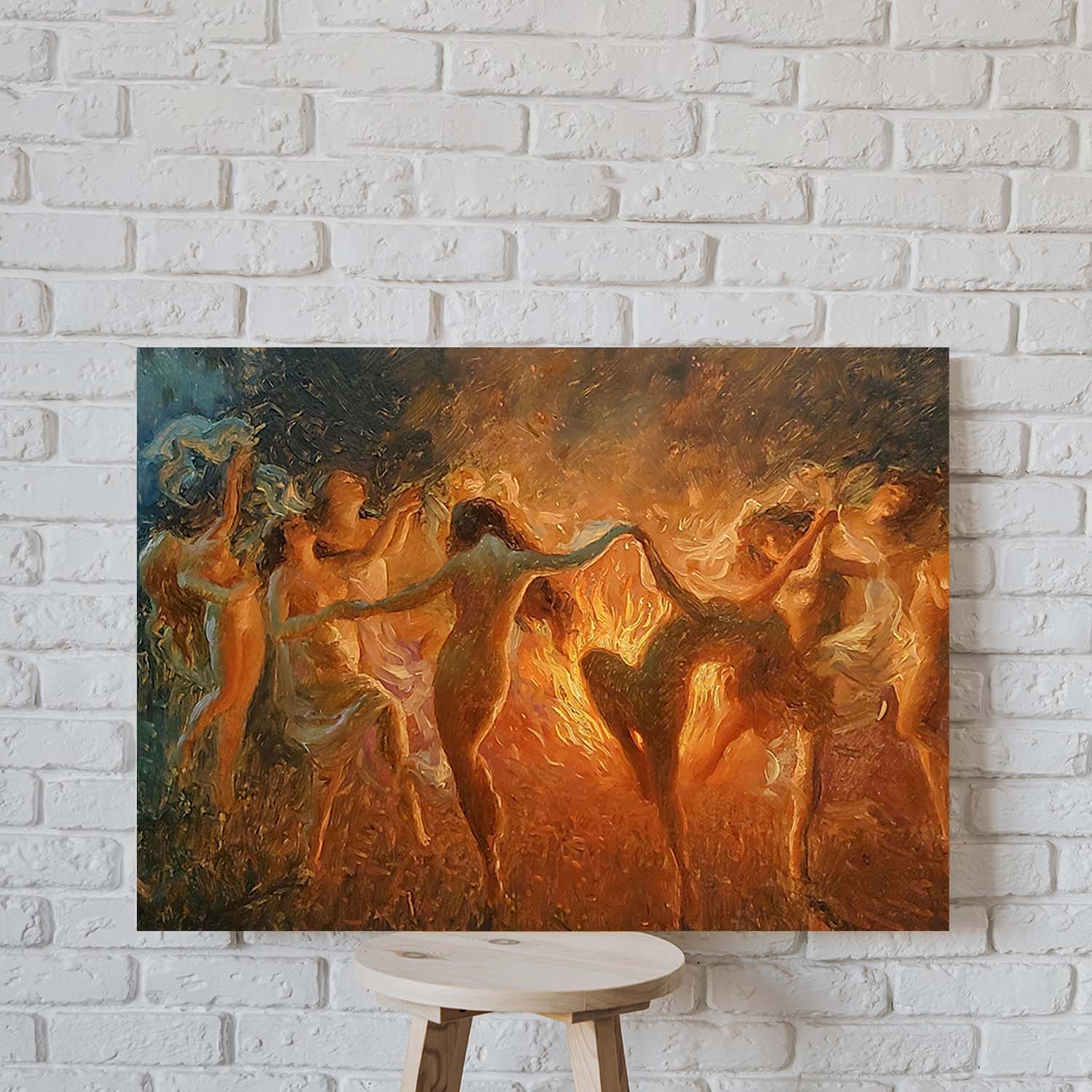Joseph Tomanek – Nude Nymphs Dancing to Pan_s Flute Around the Fire